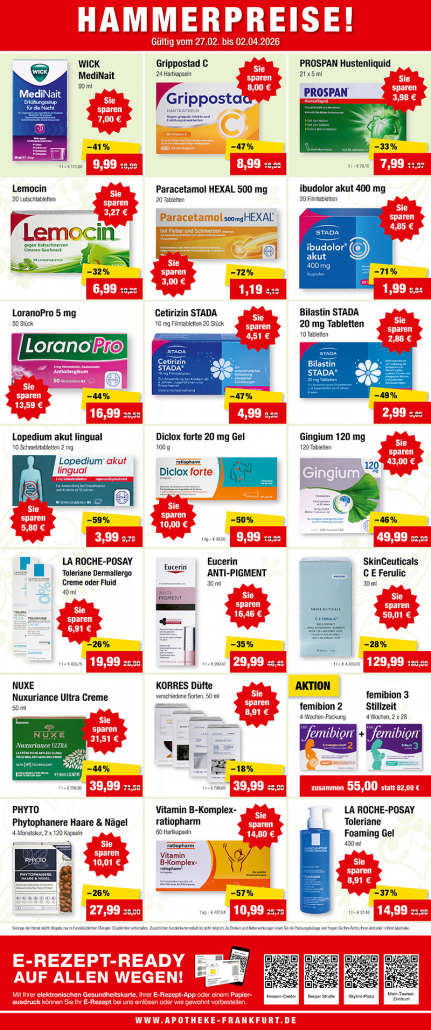Bei unseren Monatsangeboten finden Sie immer Medikamente, Pflegeprodukte, Nahrungsergänzungsmittel und vieles mehr zu besonders attraktiven Preisen.